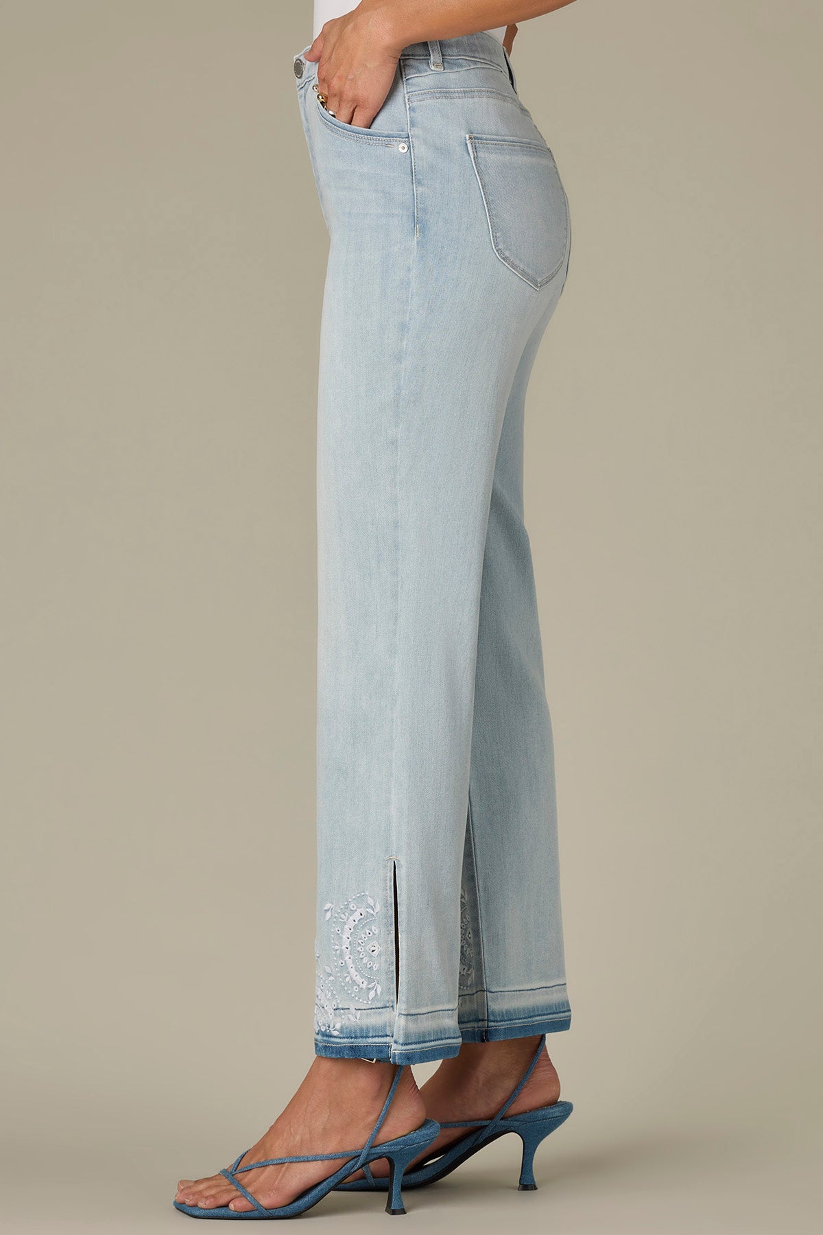Bennett High Rise Embroidered Clean Finish Hem Petite Barely Boot Jean