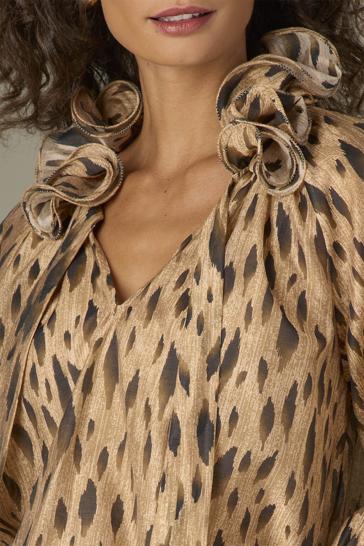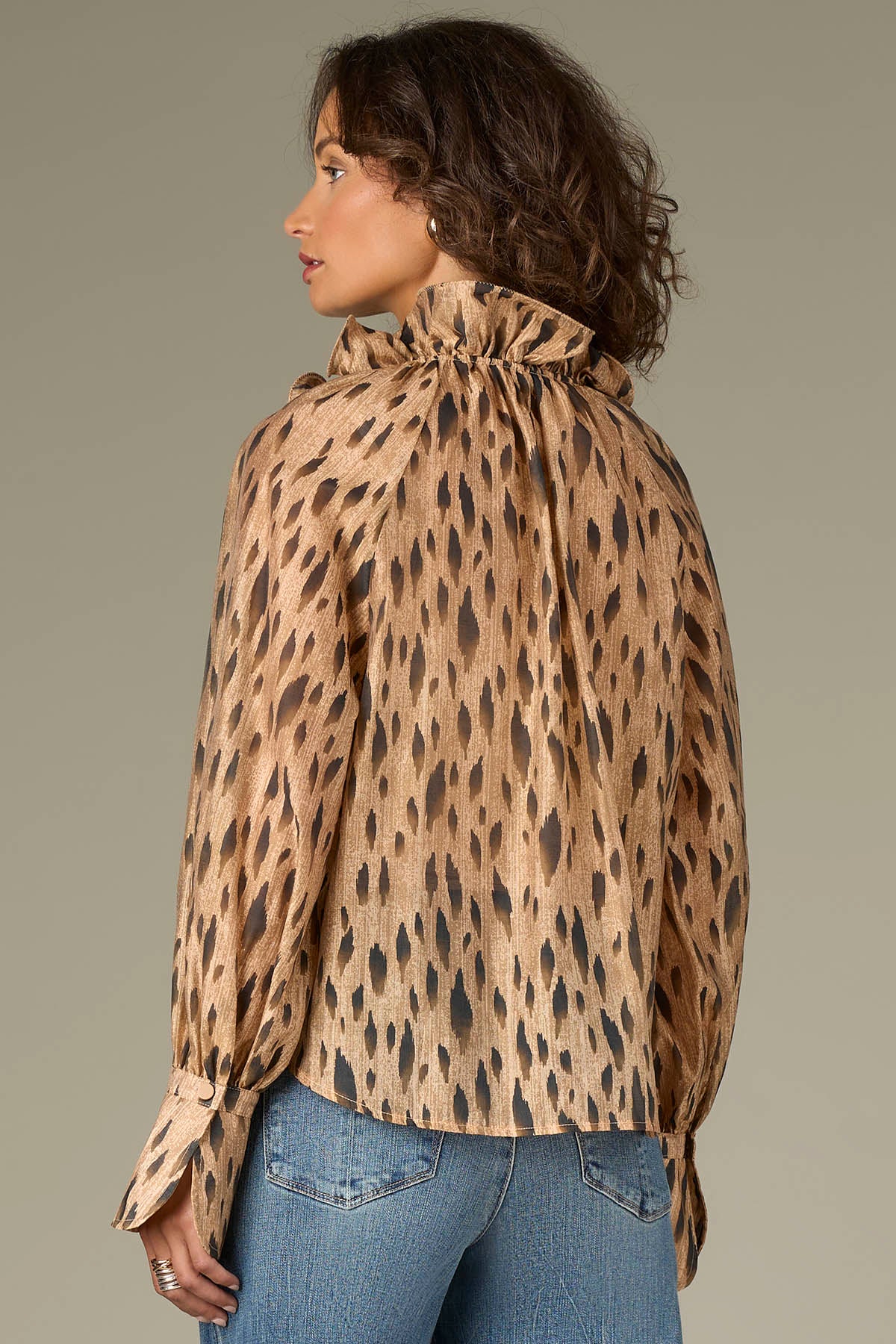 French Cuff Sleeve Babylock Wired Edge Collar Animal Print Woven Top