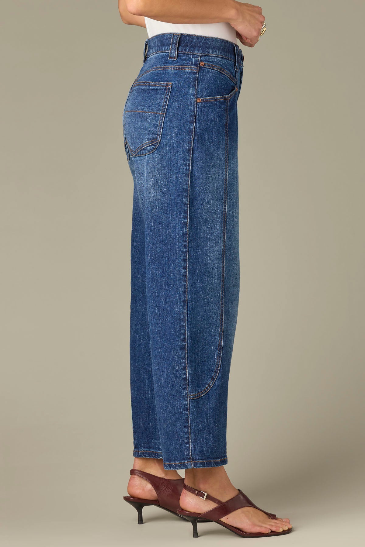 High Rise Barely Barrel Jeans with V-Yoke and Front Panels