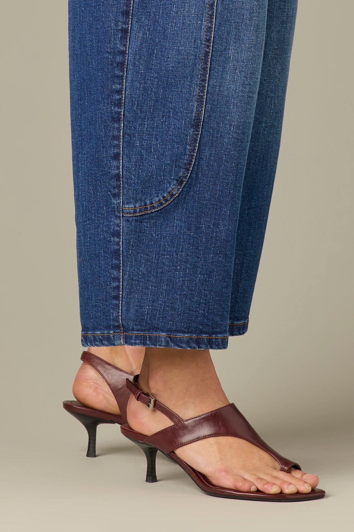 The Barely Barrel jean is slightly fitted at the hips with a relaxed, barrel-shaped fit from the thigh to the leg opening.