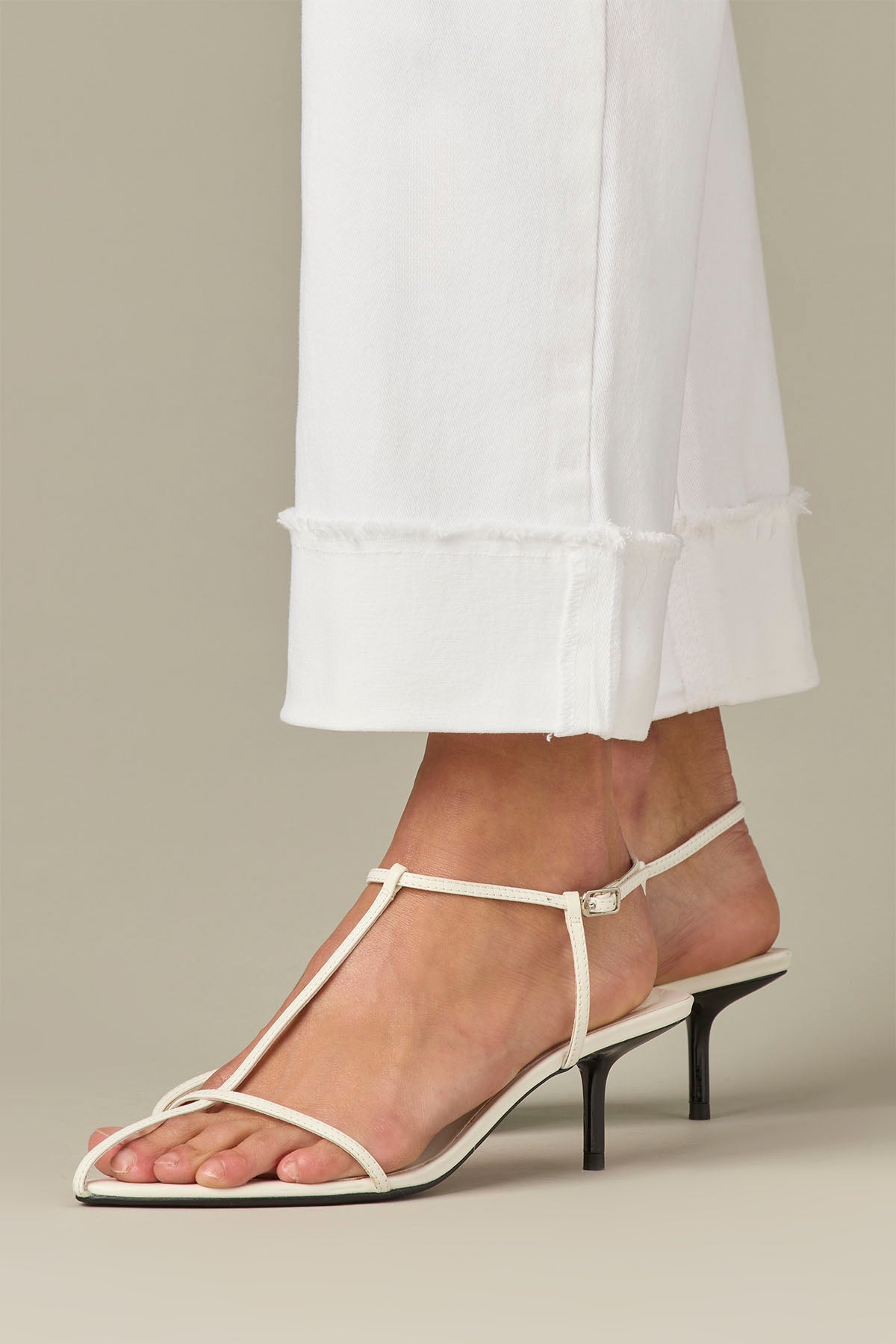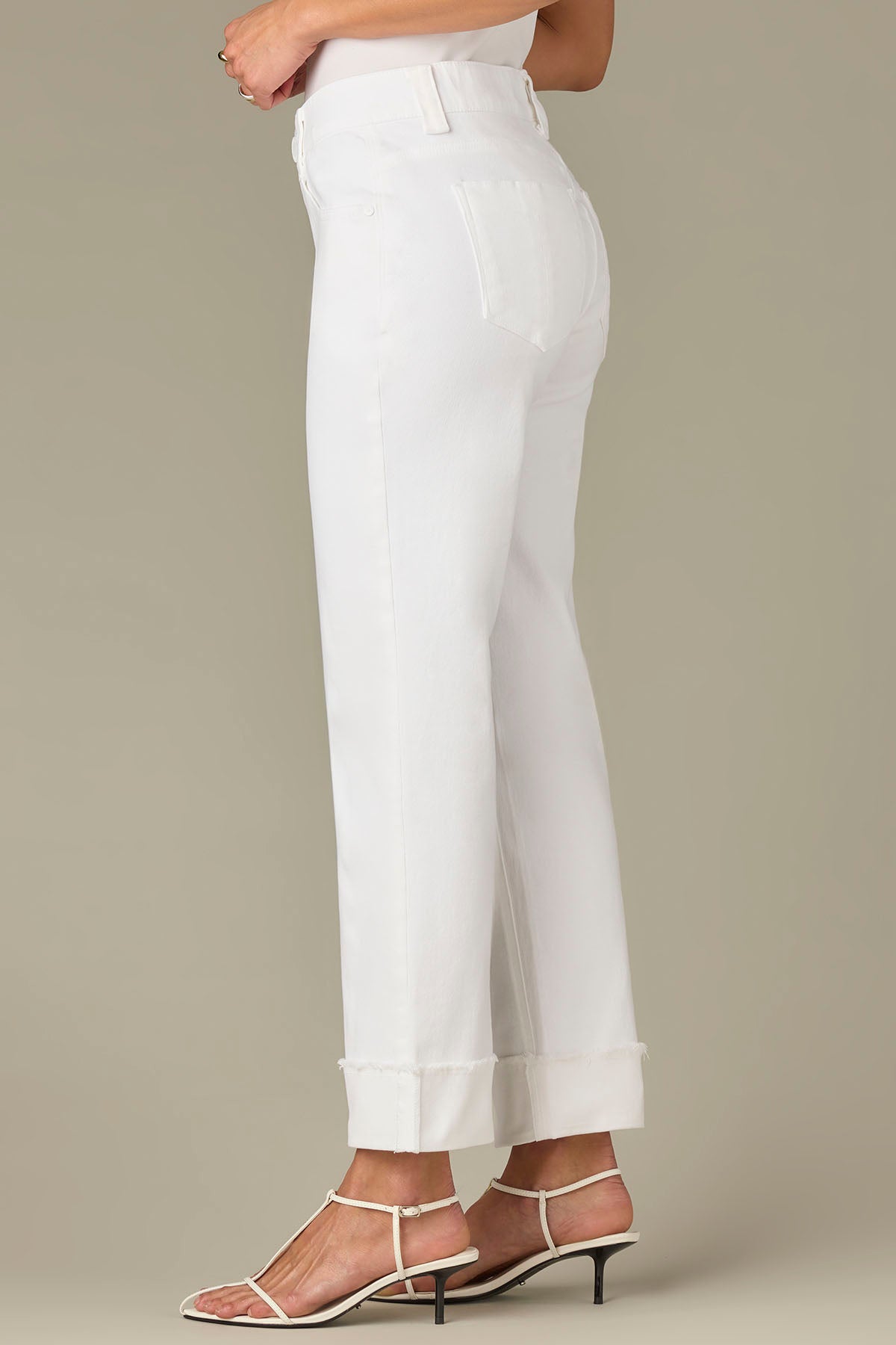 These Boyfriend pants in an optic white hue are fitted through the hips with a more relaxed, slightly slouchy fit from the mid-thigh to the frayed leg opening. Made with Contour Shape Technology for a tailor-made, flawless fit and thoughtful design details.