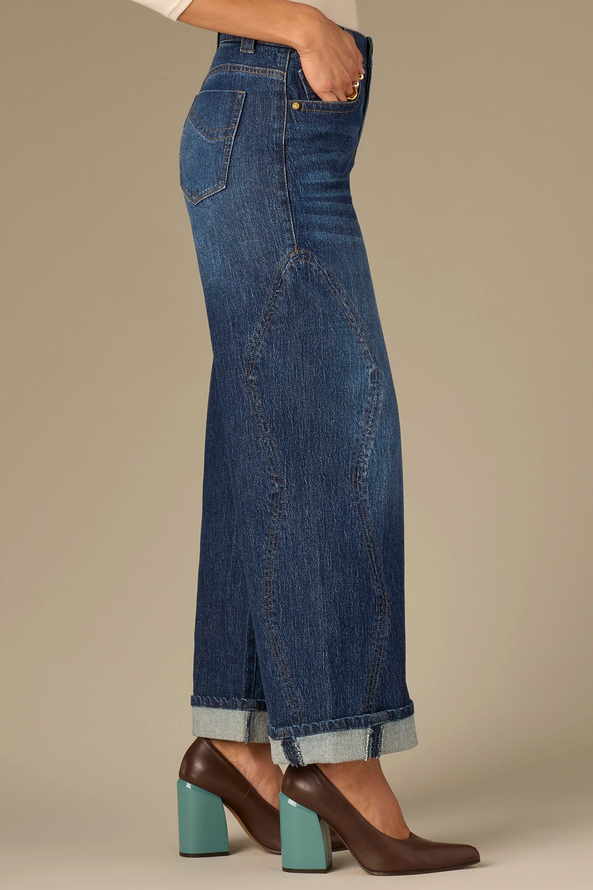 High Rise Cuffed Wyatt Wide Leg Jeans with Uneven Side Panels