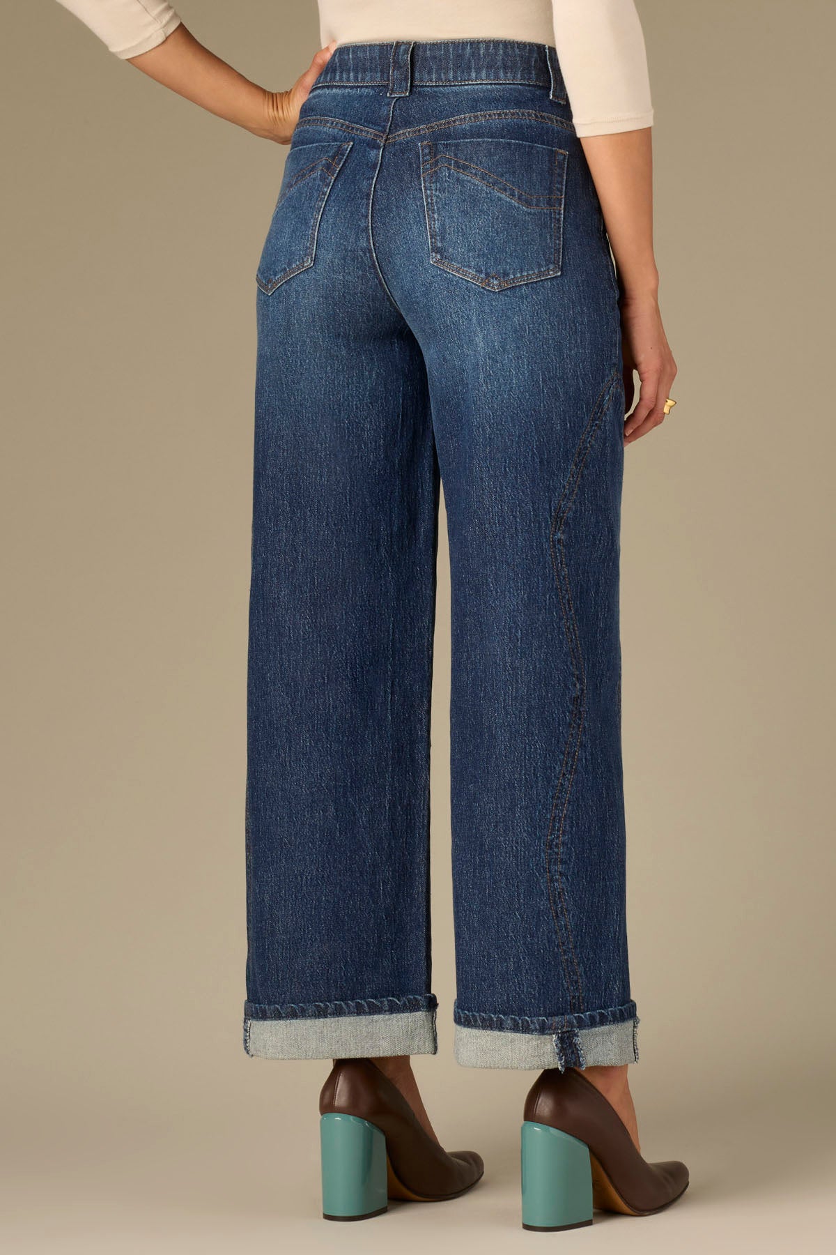 Our Wyatt Wide Leg jean is fitted through the hips with a relaxed, wide opening through the legs. Featuring uneven side panels, a cuffed hem, and Contour Shape Technology for a tailor-made, flawless fit and thoughtful design details.