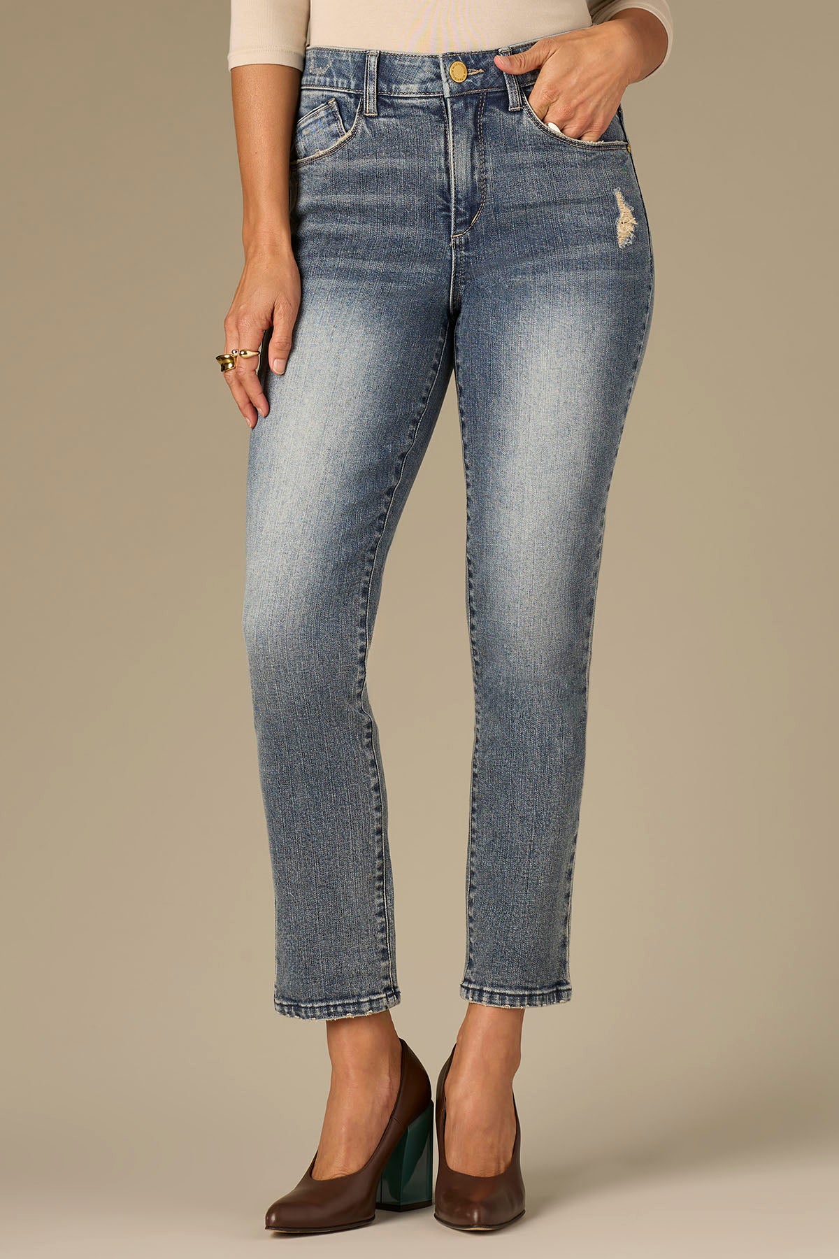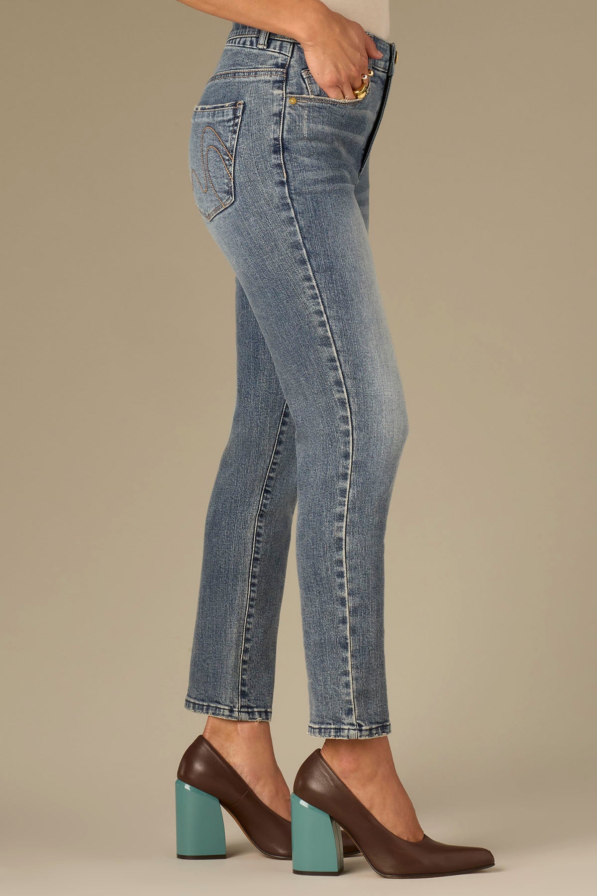 The Logan Vintage Skinny is high-waisted with a straight, slim, and not-too-tight fit. Made with Contour Shape Technology for a tailor-made, flawless fit and thoughtful design details, including abstract embroidery.