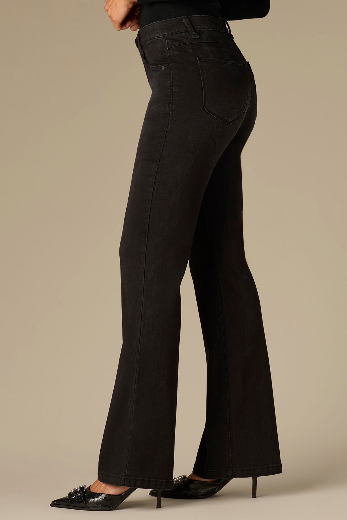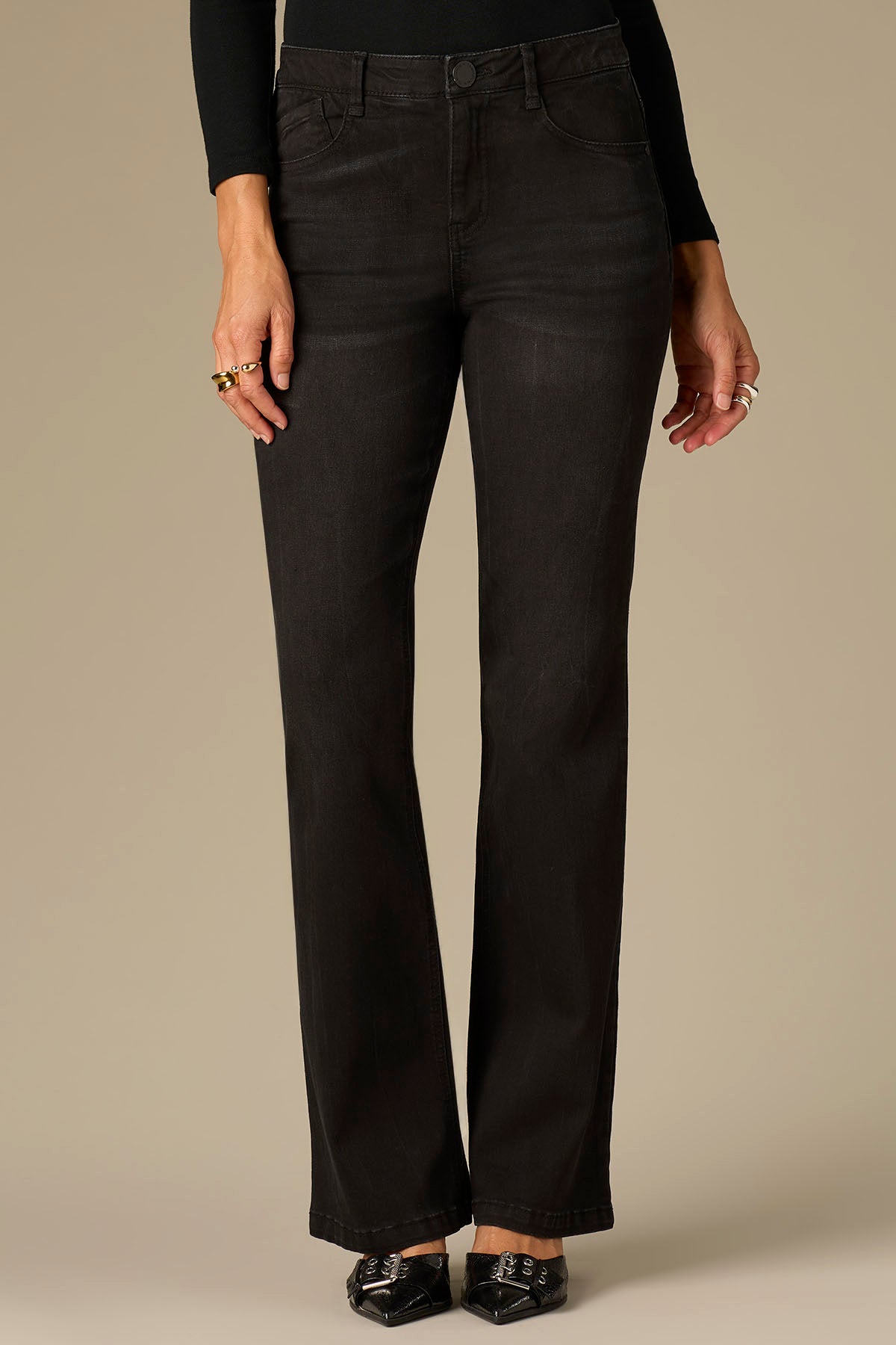 The washed black Madison Itty Bitty More Boot jean is easier than the Brittany Itty Bitty Boot with a wider leg opening. Made with Contour Shape Technology for a tailor-made, flawless fit and thoughtful design details.