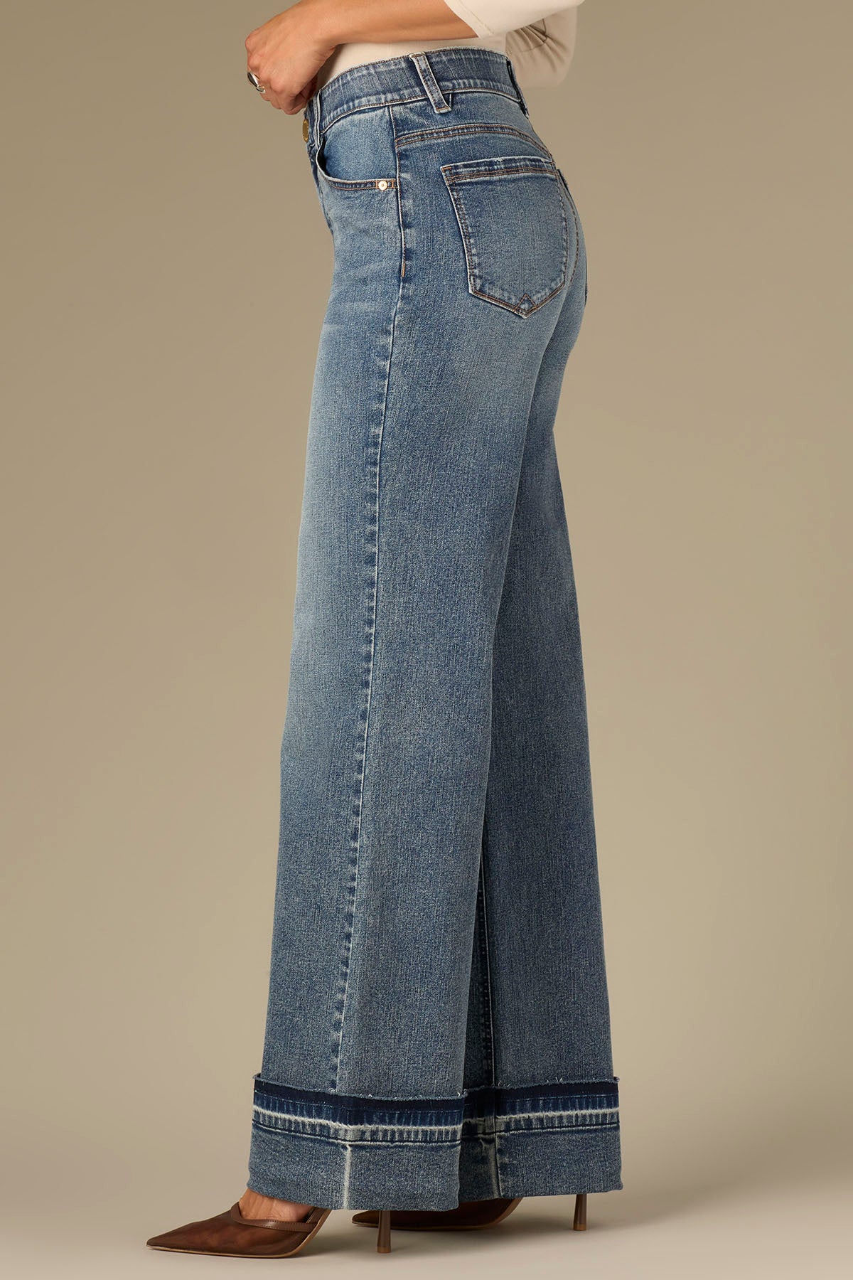High Rise Petite Sam Wide Leg Jeans with Release Cuff and Strings