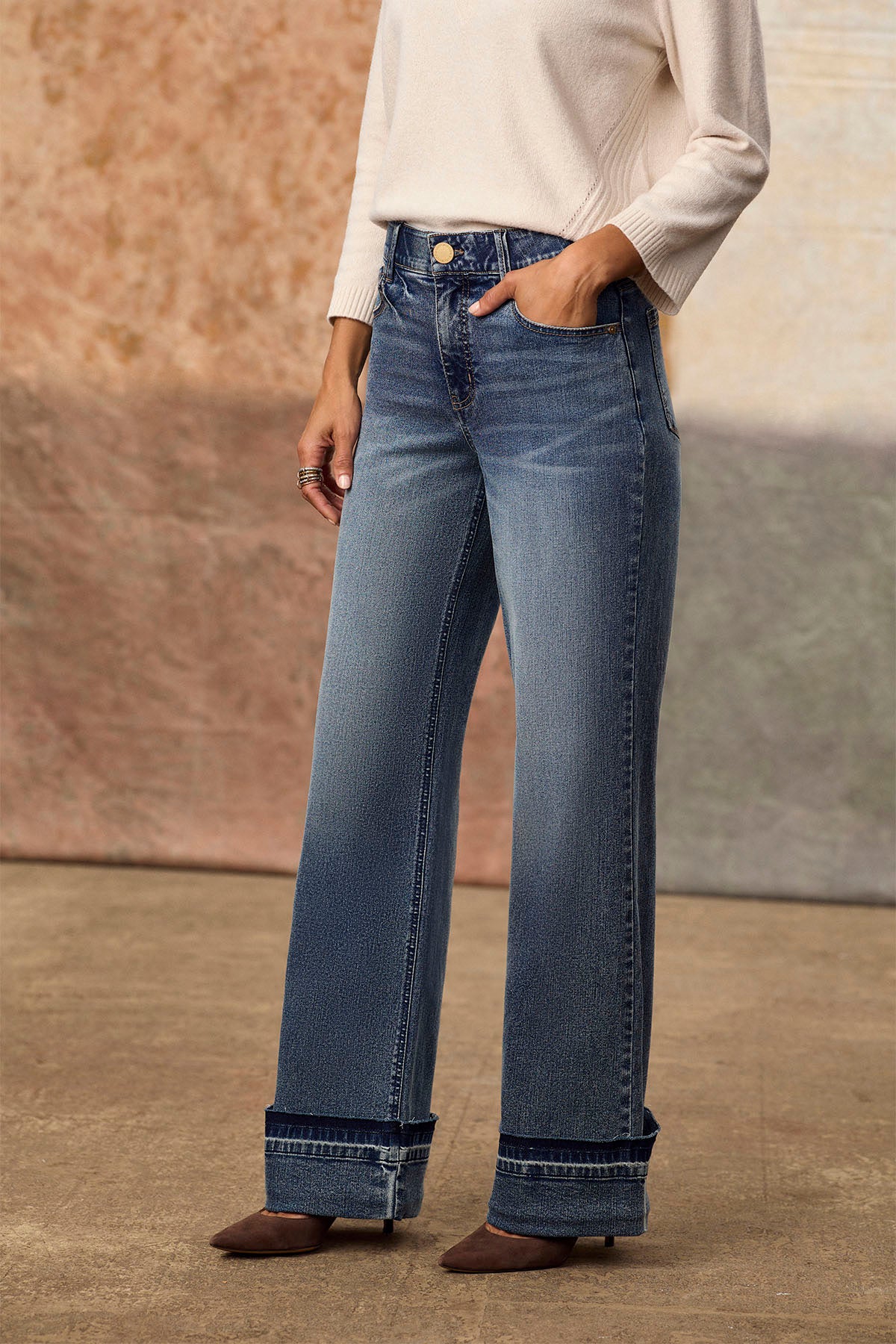 The petite Sam Wide Leg is fitted through the hips with a relaxed, wide opening through the legs. Made with Contour Shape Technology for a tailor-made, flawless fit and thoughtful design details, including a reverse release cuff hem and strings.