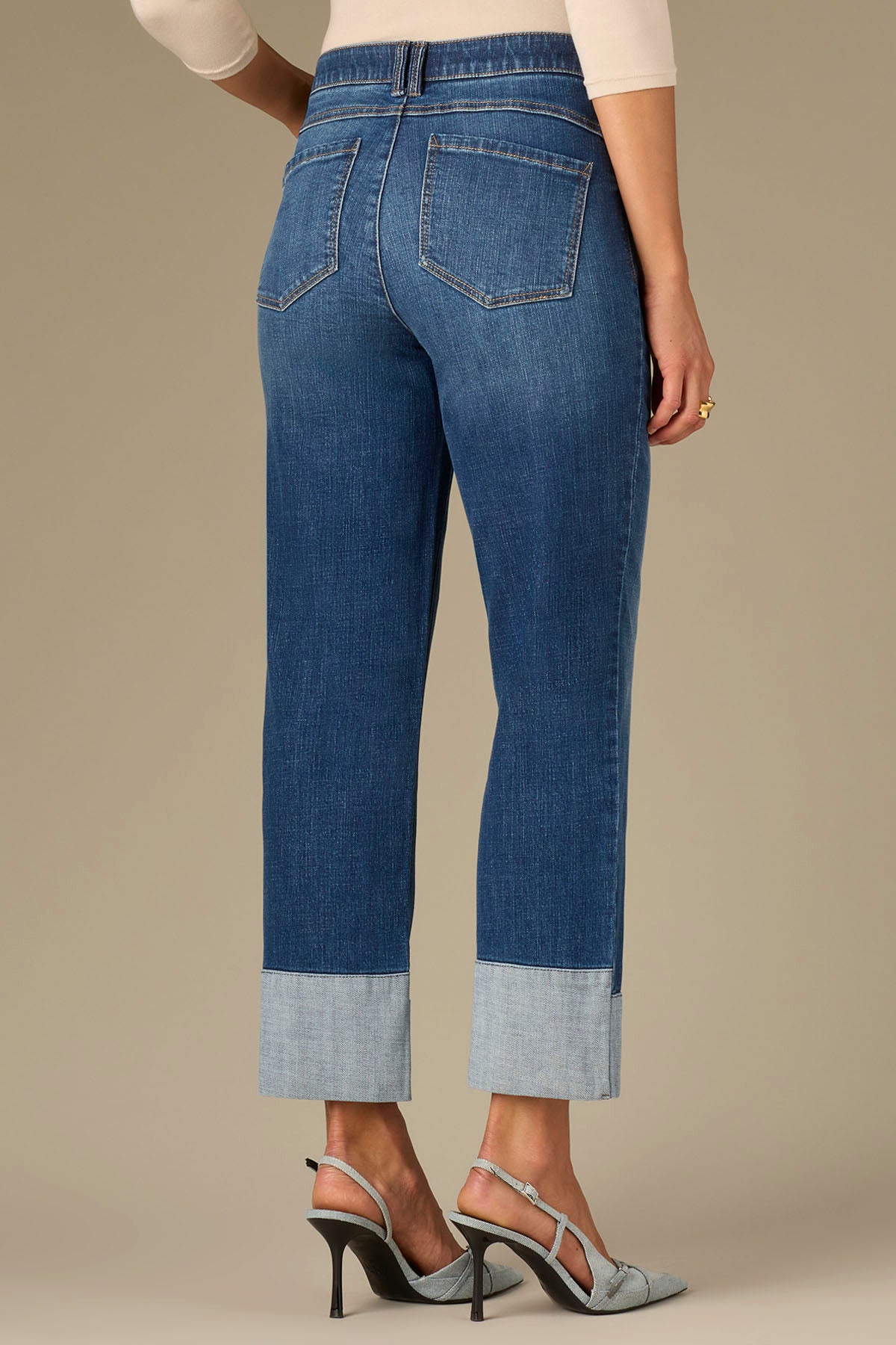 High Rise Round Up Petite Boyfriend Jeans with Reverse Side Panels