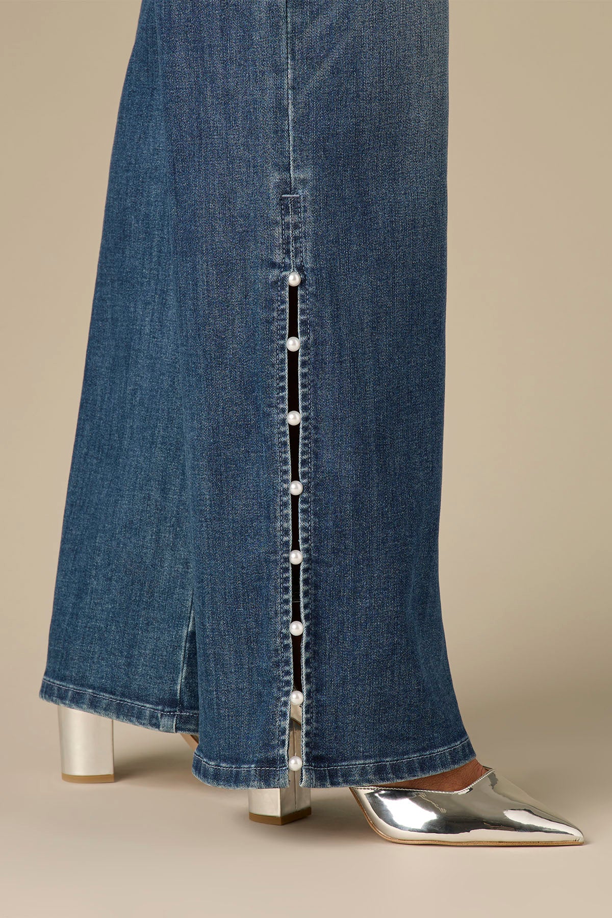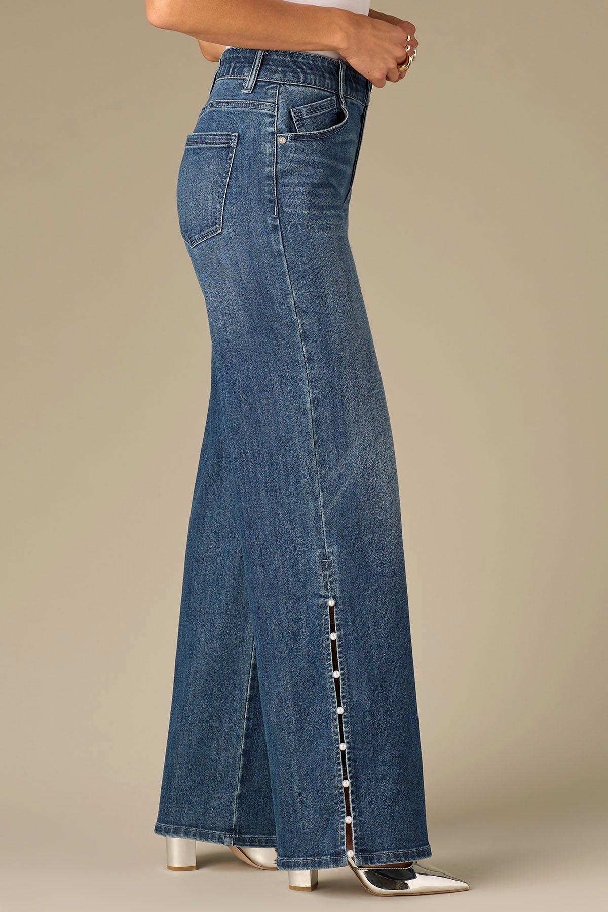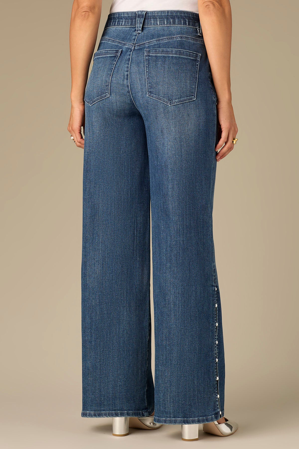The Sam Wide Leg jeans in petite sizing are fitted through the hips with a relaxed, wide opening through the legs. Made with Contour Shape Technology for a tailor-made, flawless fit and thoughtful design details. Made with recycled REPREVE® materials for a greener solution.