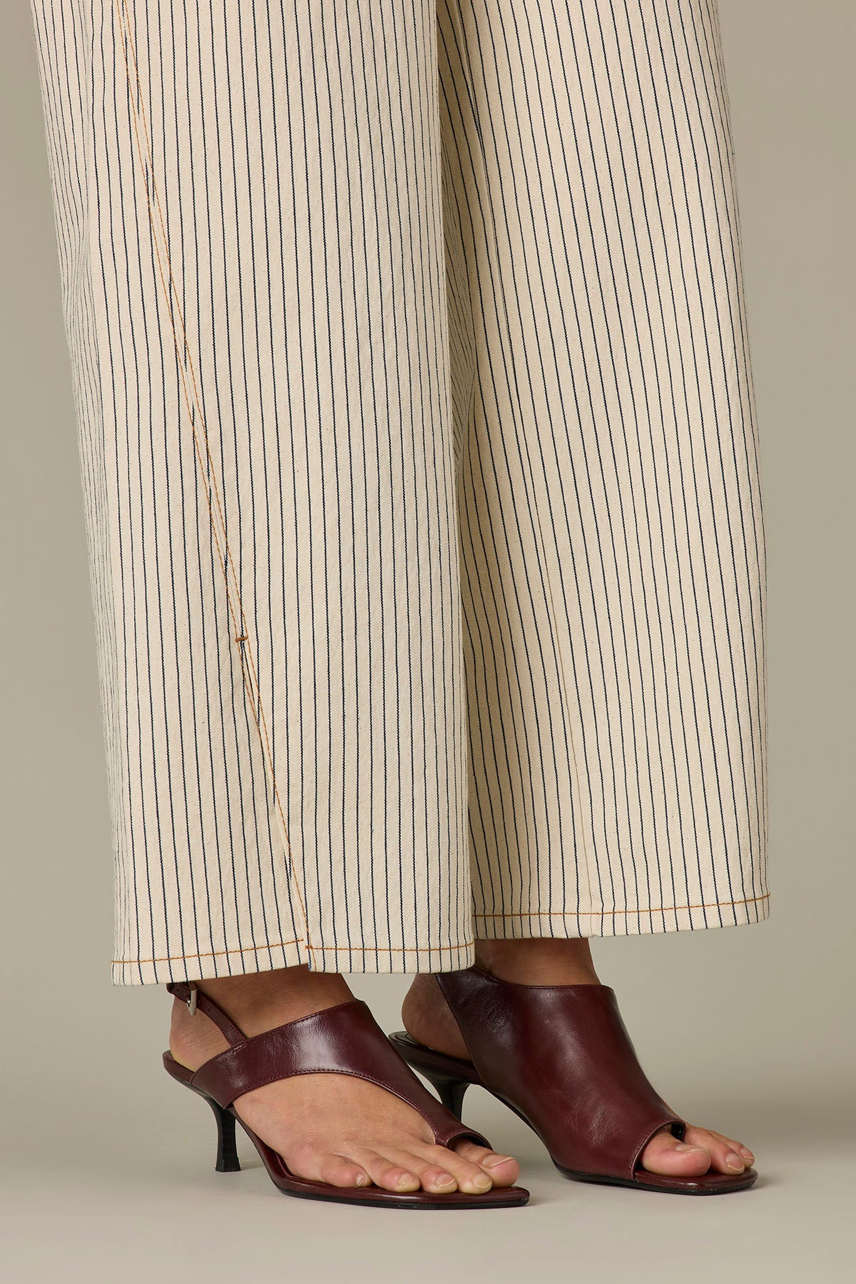 Sam High Rise Forward Seam Striped Petite Wide Leg Jeans