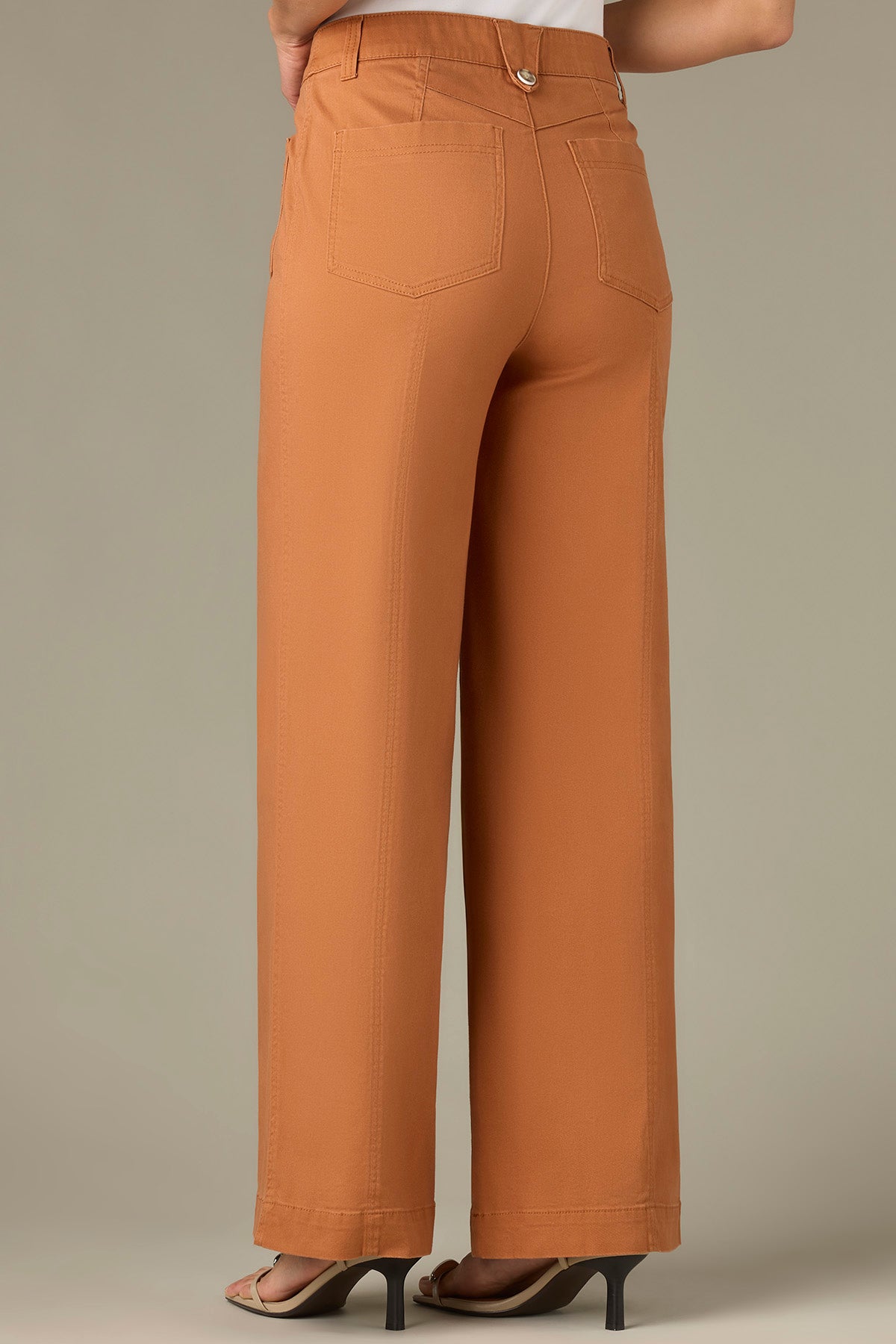 These Wide Leg pants in plus sizing are fitted through the hips with a relaxed, wide opening through the legs. Made with a V-yoke, button fly closure, and Contour Shape Technology for a tailor-made, flawless fit and thoughtful design details.