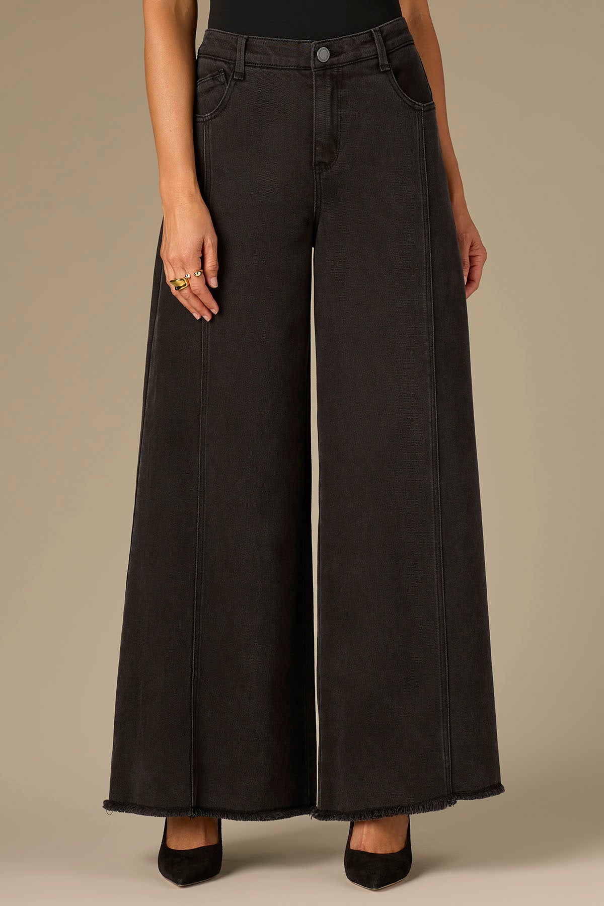 The Wider Leg is fitted through the hips with a relaxed opening through the legs that's slightly wider than the Wide Leg fit. Made with Contour Shape Technology for a tailor-made, flawless fit and thoughtful design details like a center seam and fray hem.