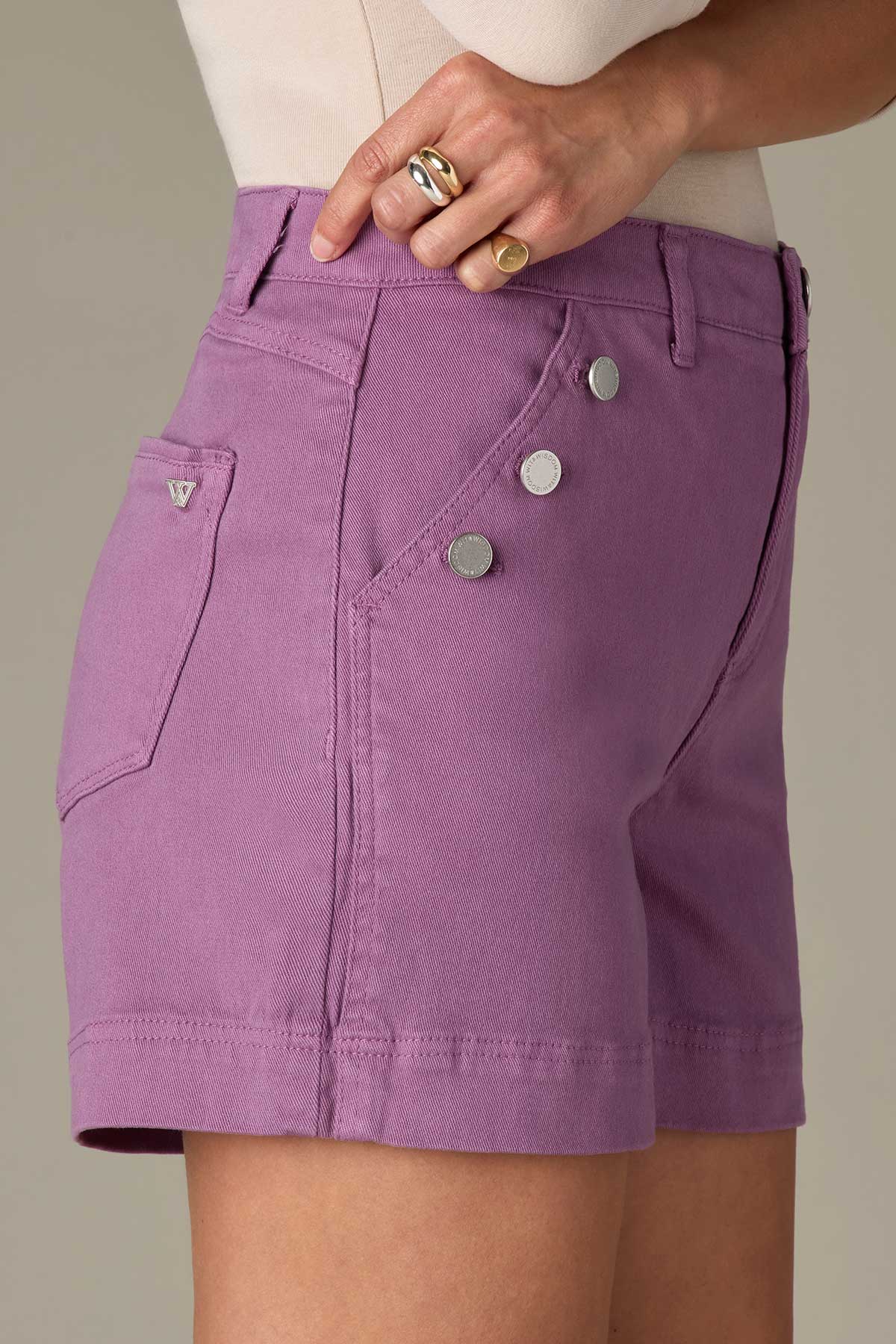 Skyrise Double Side Seam Sailor Button Pocket Shorts