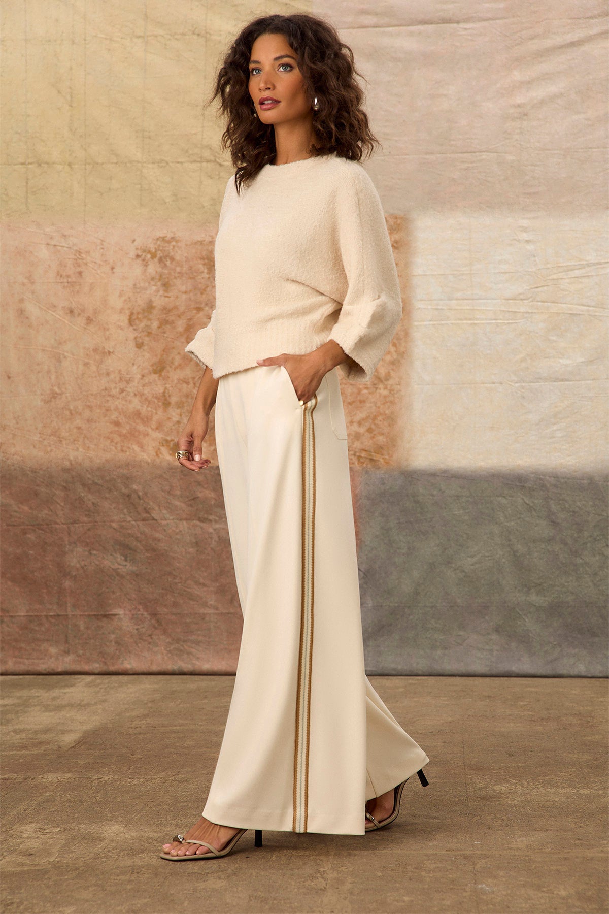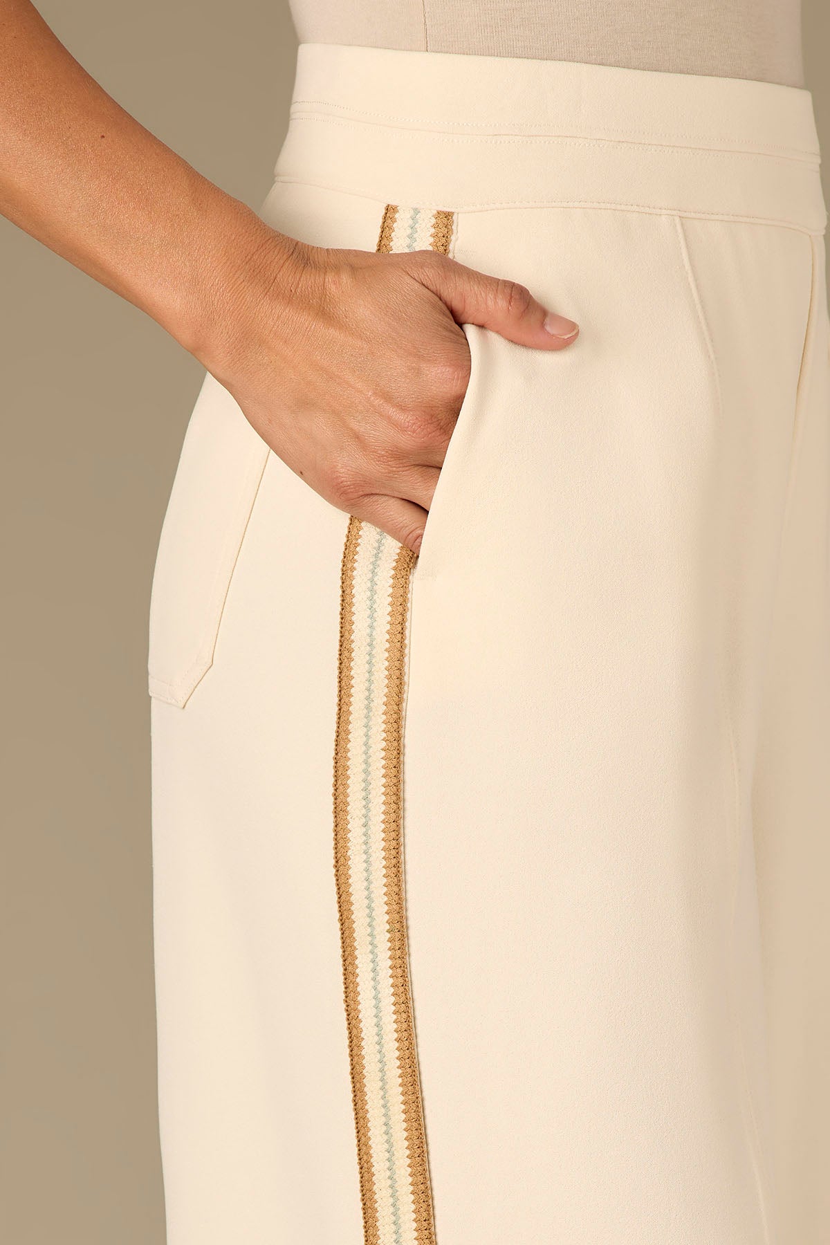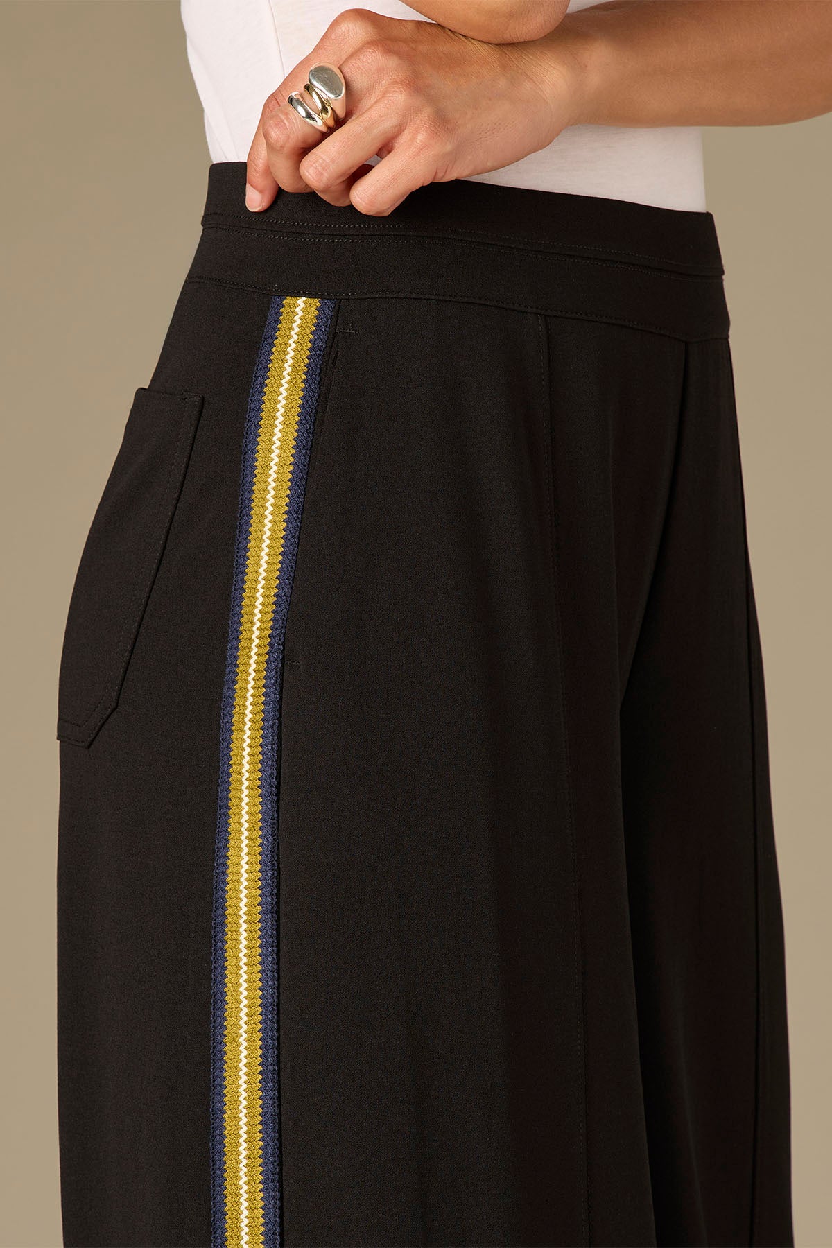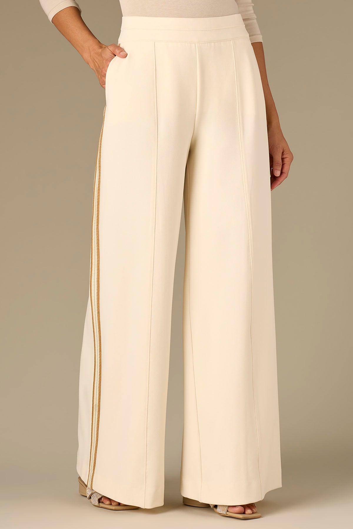 Skyrise Pintuck Palazzo Glider Pants with Stripe Trim