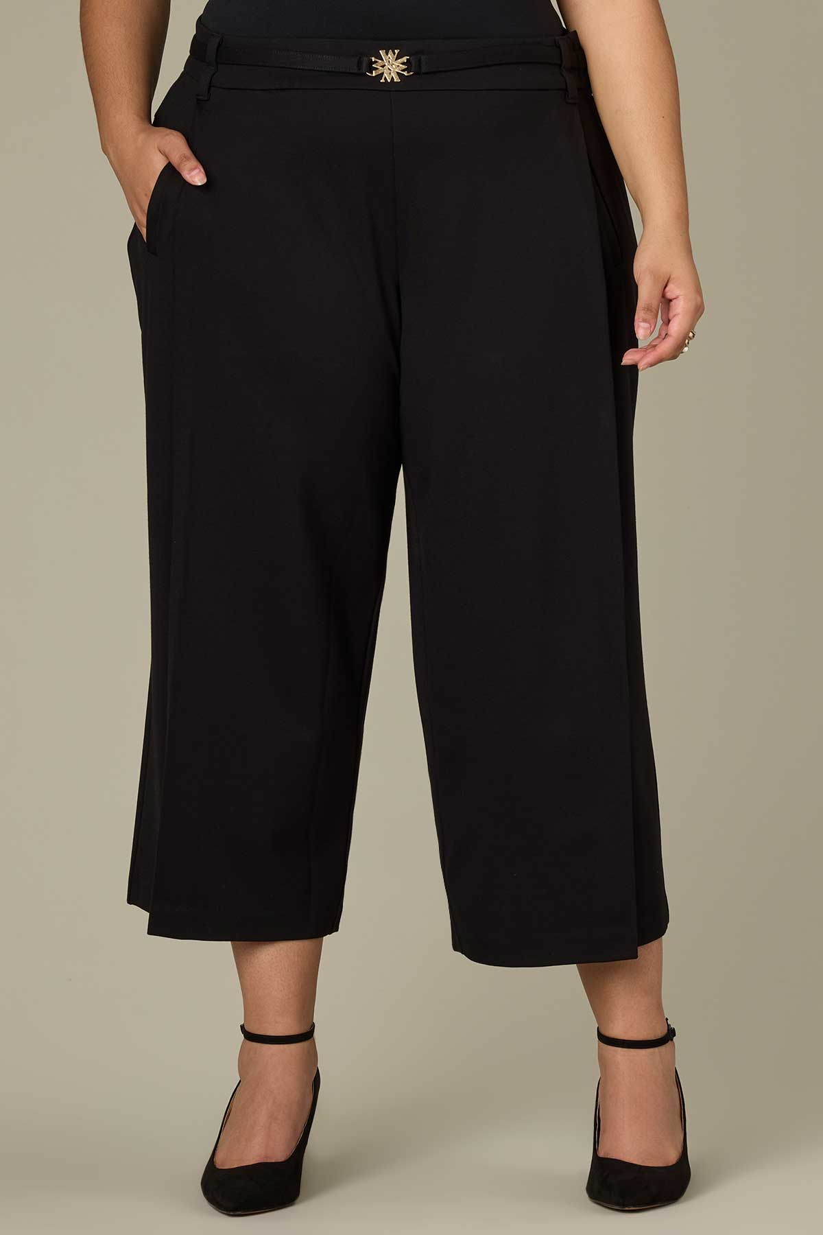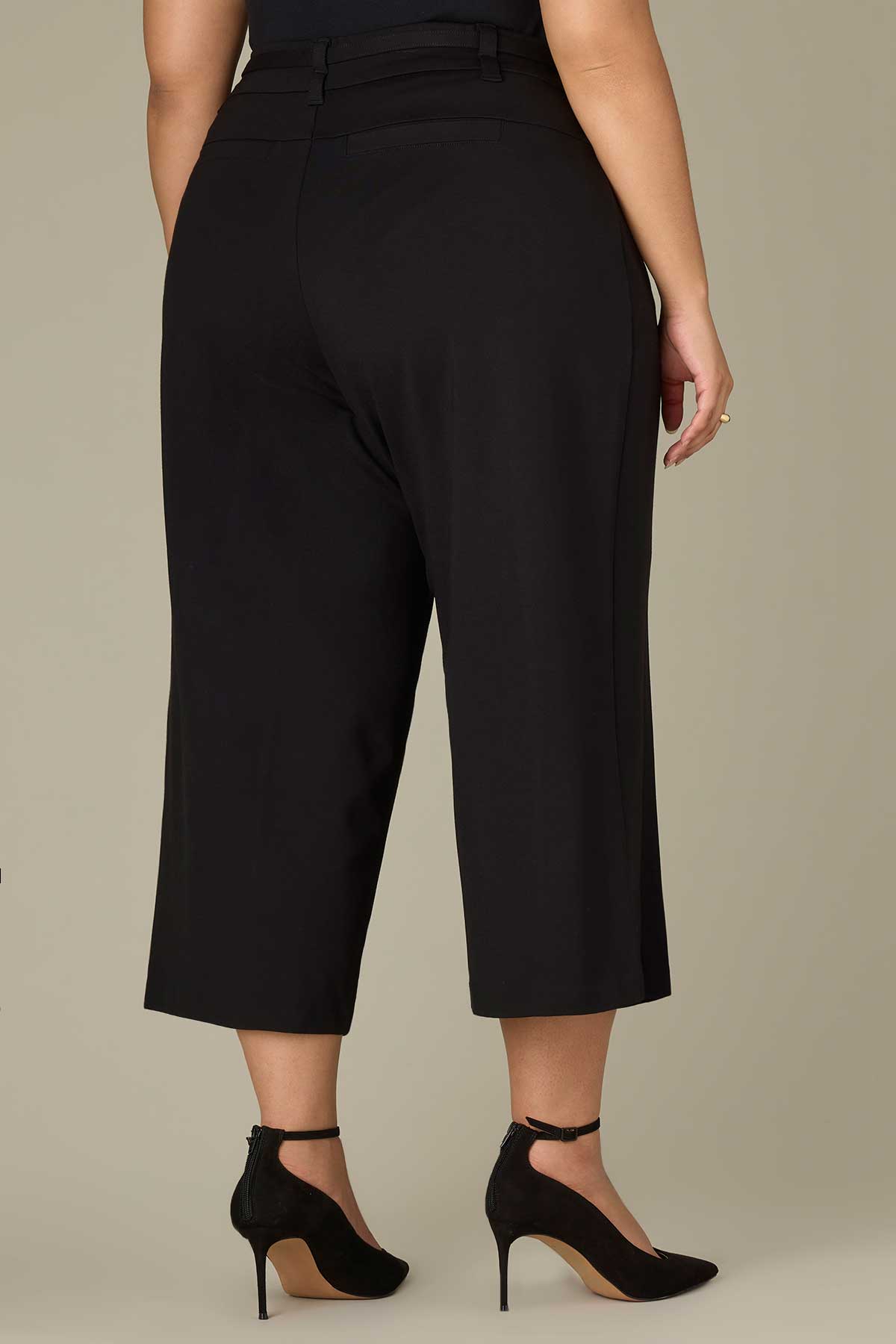 These cropped black Wide Leg trousers in plus sizing are fitted through the hips with a comfortable, wide opening through the legs with a polished touch. Made with Contour Shape Technology for a tailor-made, flawless fit and thoughtful design details.