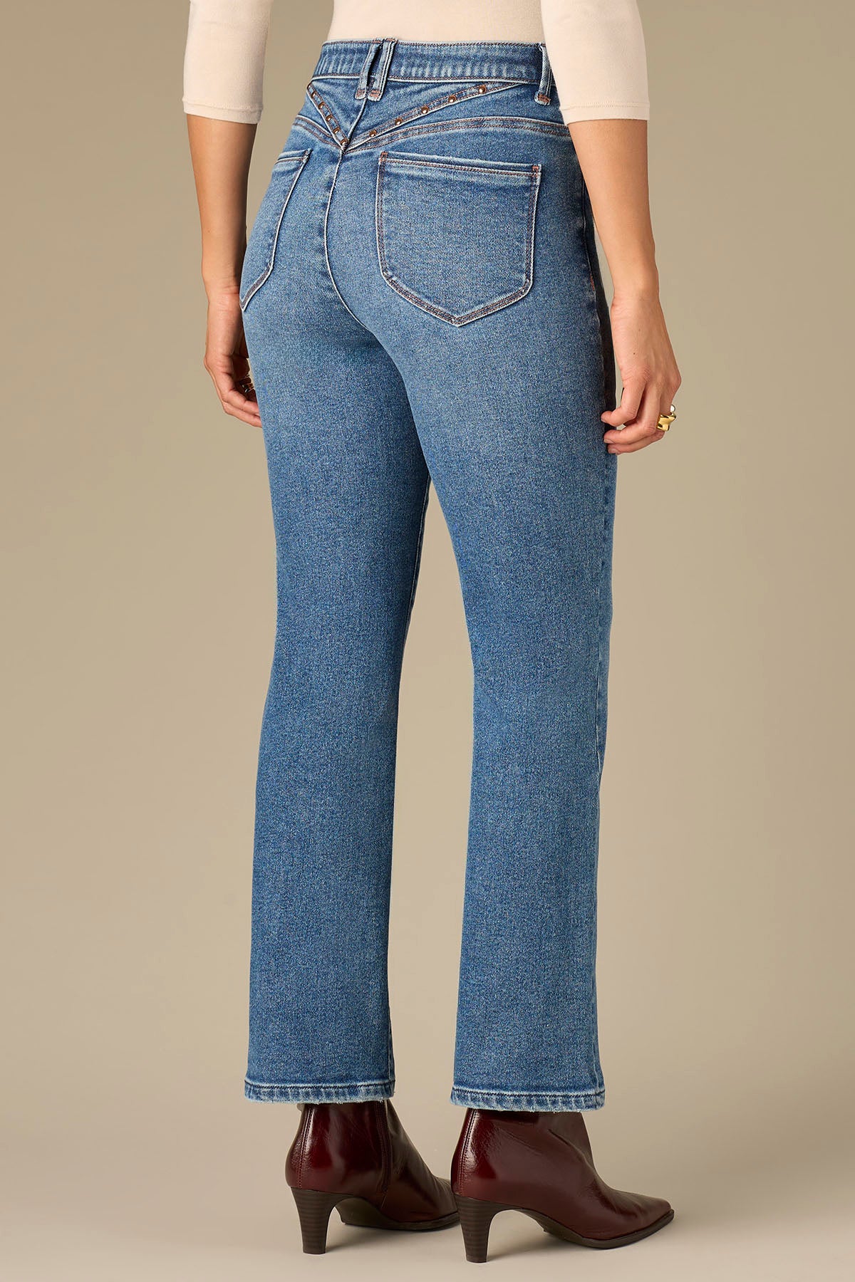 Skyrise V-Yoke Bennett Barely Boot Petite Jeans with Studs