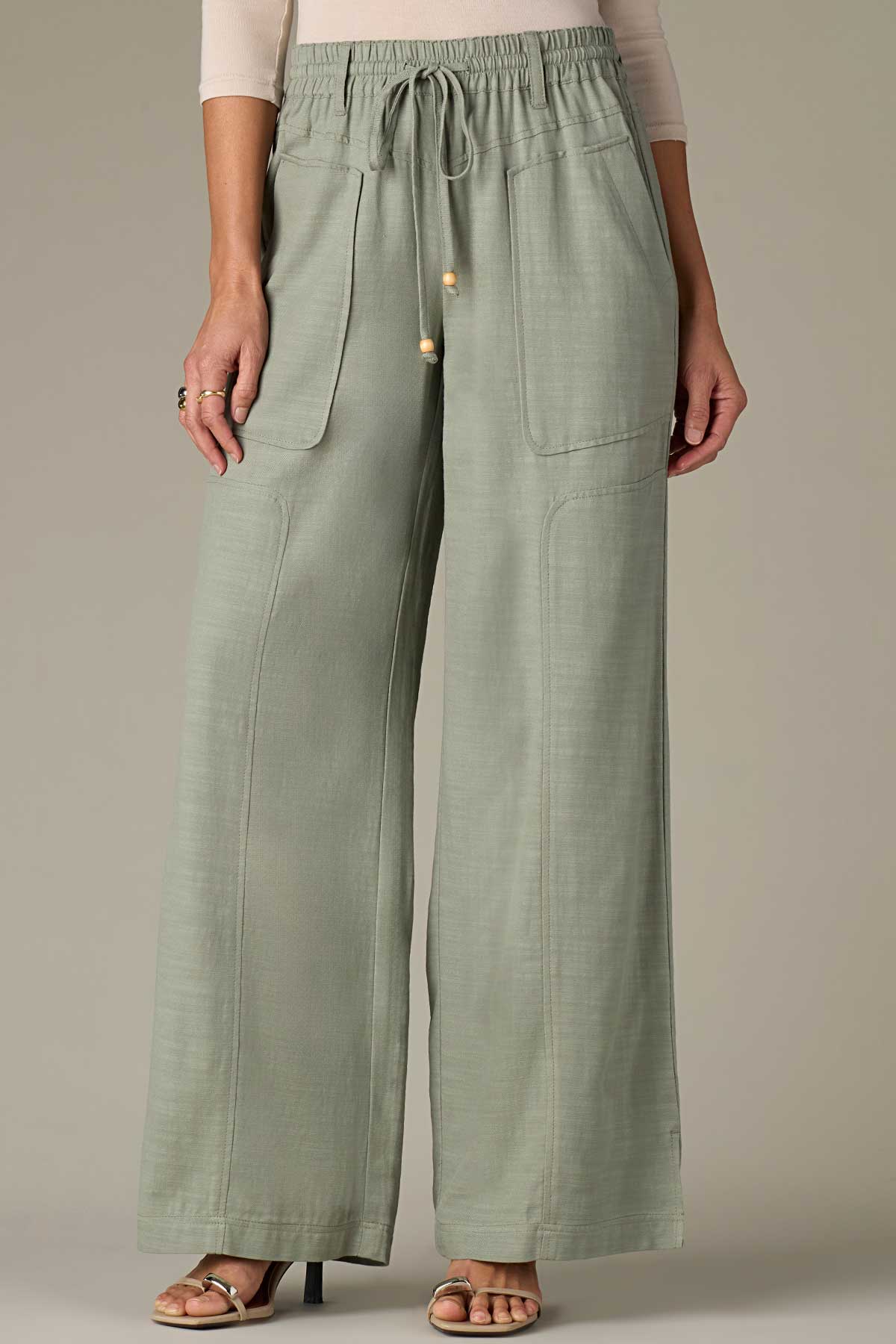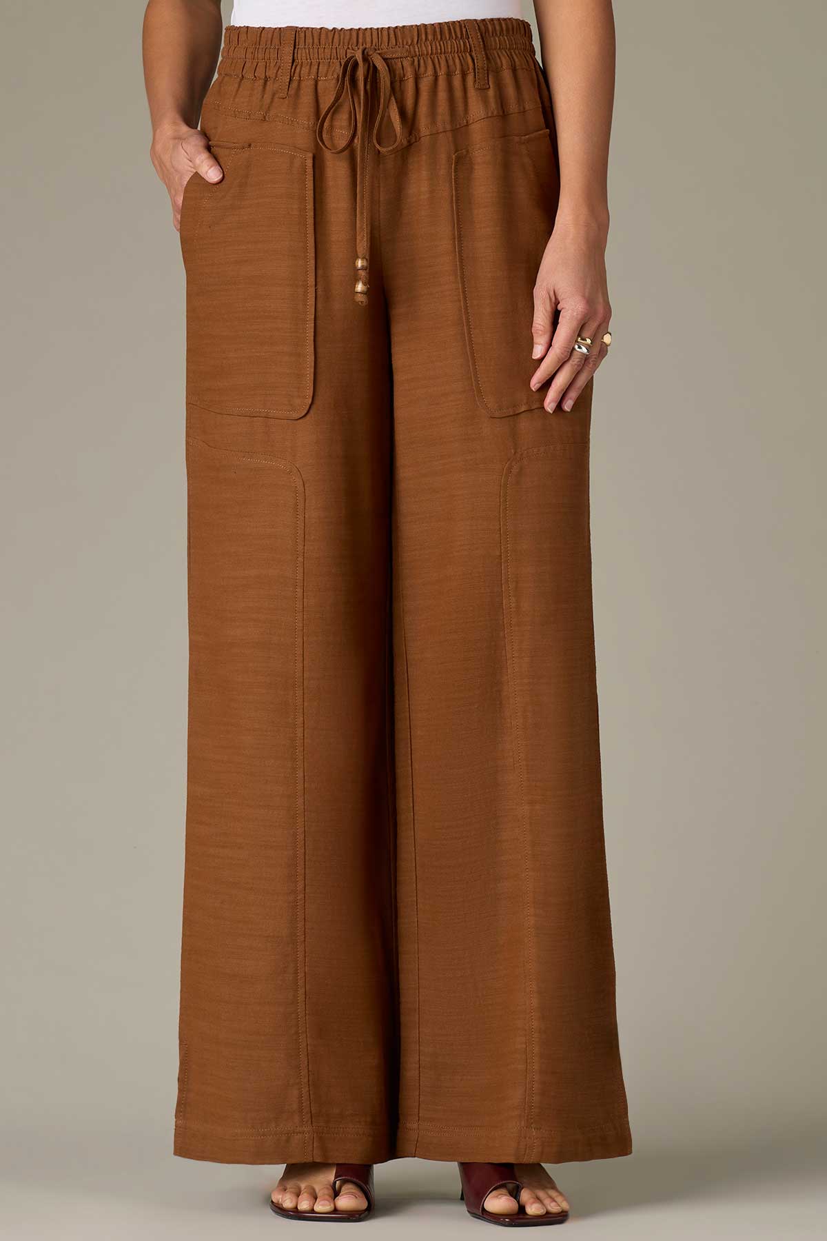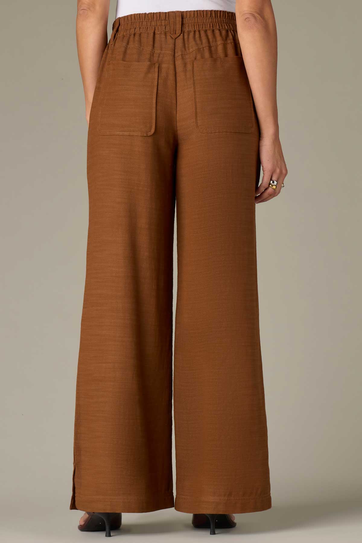 Skyrise V-Yoke Side Panel Petite Wide Leg Pants with Self Tie