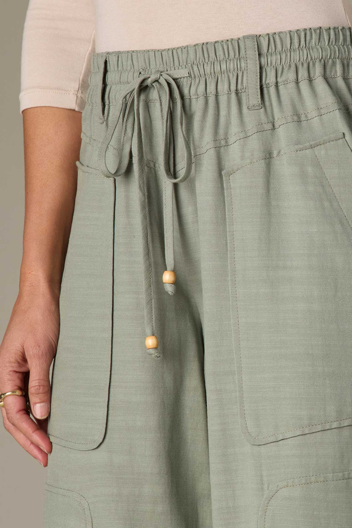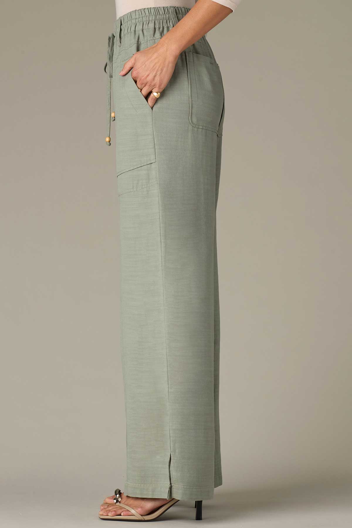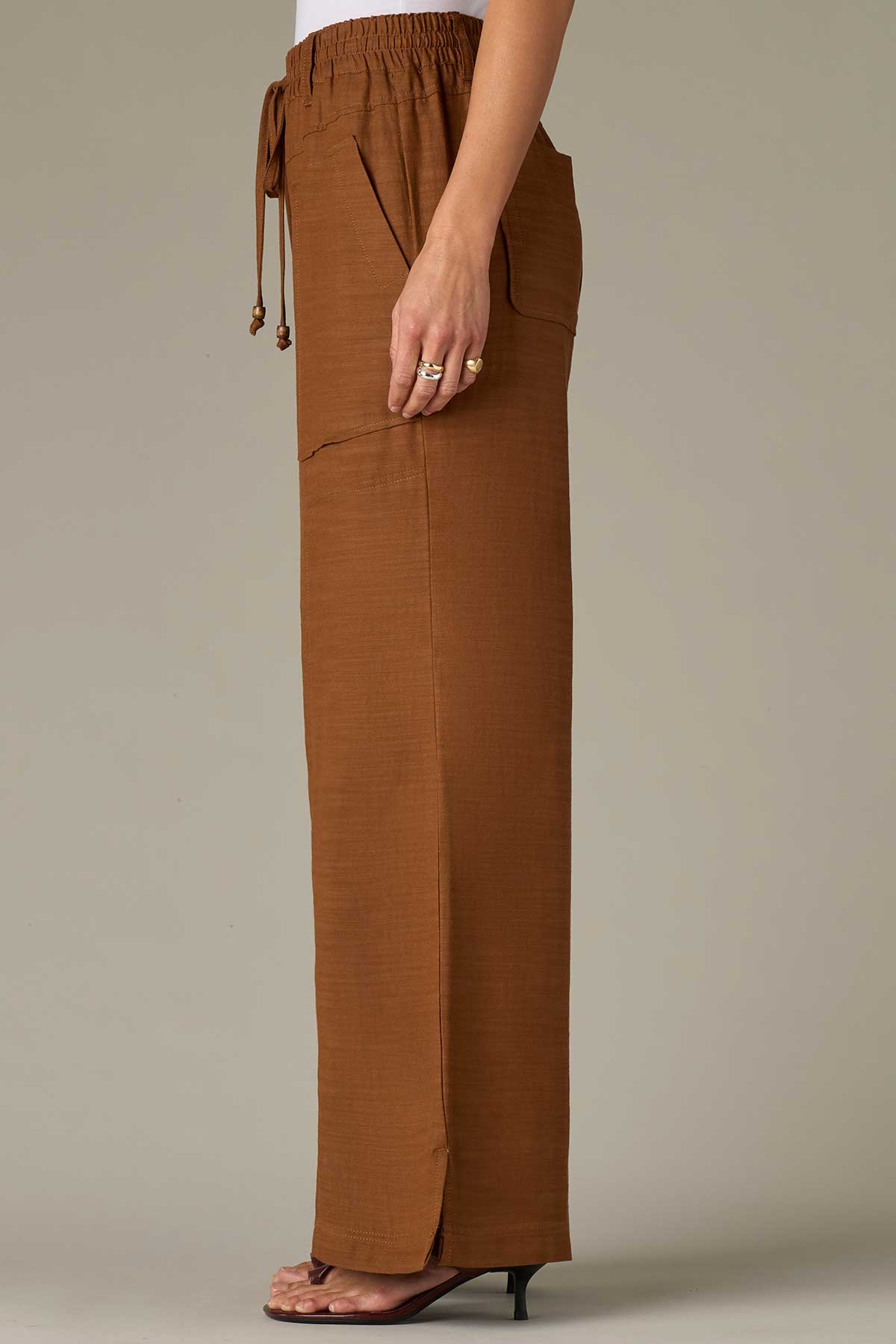 Skyrise V-Yoke Side Panel Petite Wide Leg Pants with Self Tie